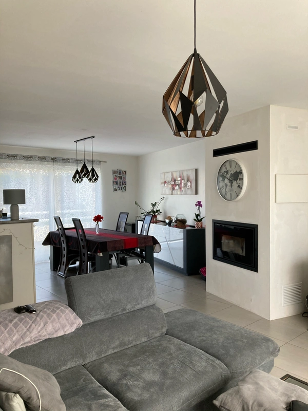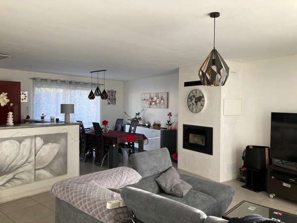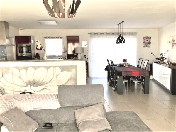 NOUVEAUTE MAISON de PLAIN PIED environ 100 m2, comprenant une entrée avec placard, une vaste pièce de vie équipée d'un insert à pellets. La cuisine est ouverte, aménagée et équipée d'un four, d'une hotte, de plaque de cuisson, d'un lave-vaisselle. La buanderie est attenante à la cuisine et bénéficie d'un accès vers le jardin. Puis vous découvrez l'espace nuit qui comprend trois chambres, une salle d'eau et aussi un espace bureau et sanitaires avec lave-mains. A l'extérieur vous trouverez une terrasse et jardin puis un vaste garage d'environ 48 m2 + préau d'environ 25 m2 pouvant accueillir 2 véhicules.